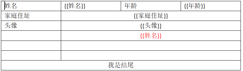 2、准备word模板文件,其中需要被替换的内容需要使用{{}}双花括号进行包裹,内容为excel中的标题。